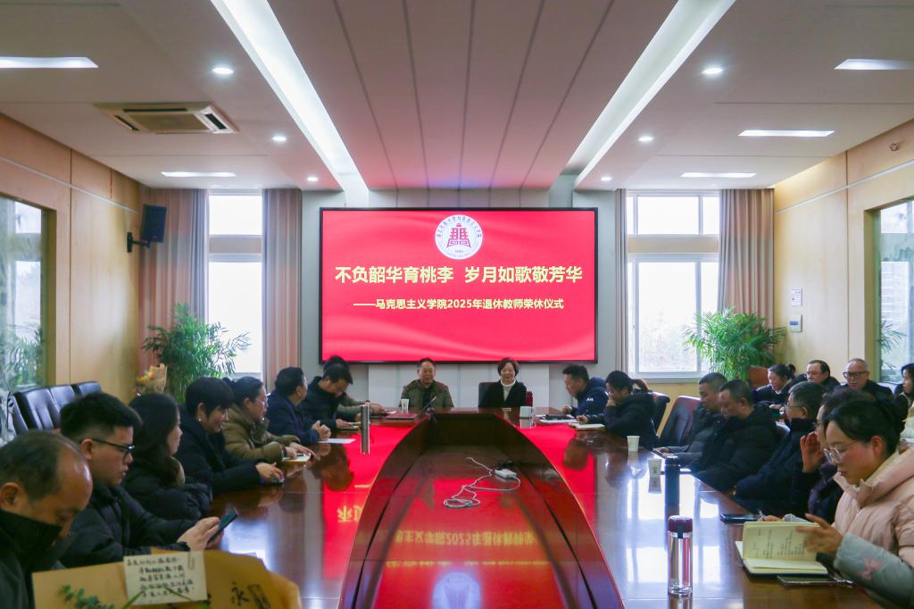 本网讯 1月9日,马克思主义学院举行2025年退休教师荣休仪式,为刘小燕、谭大友和杨春彩三位资深教师致以崇高敬意。