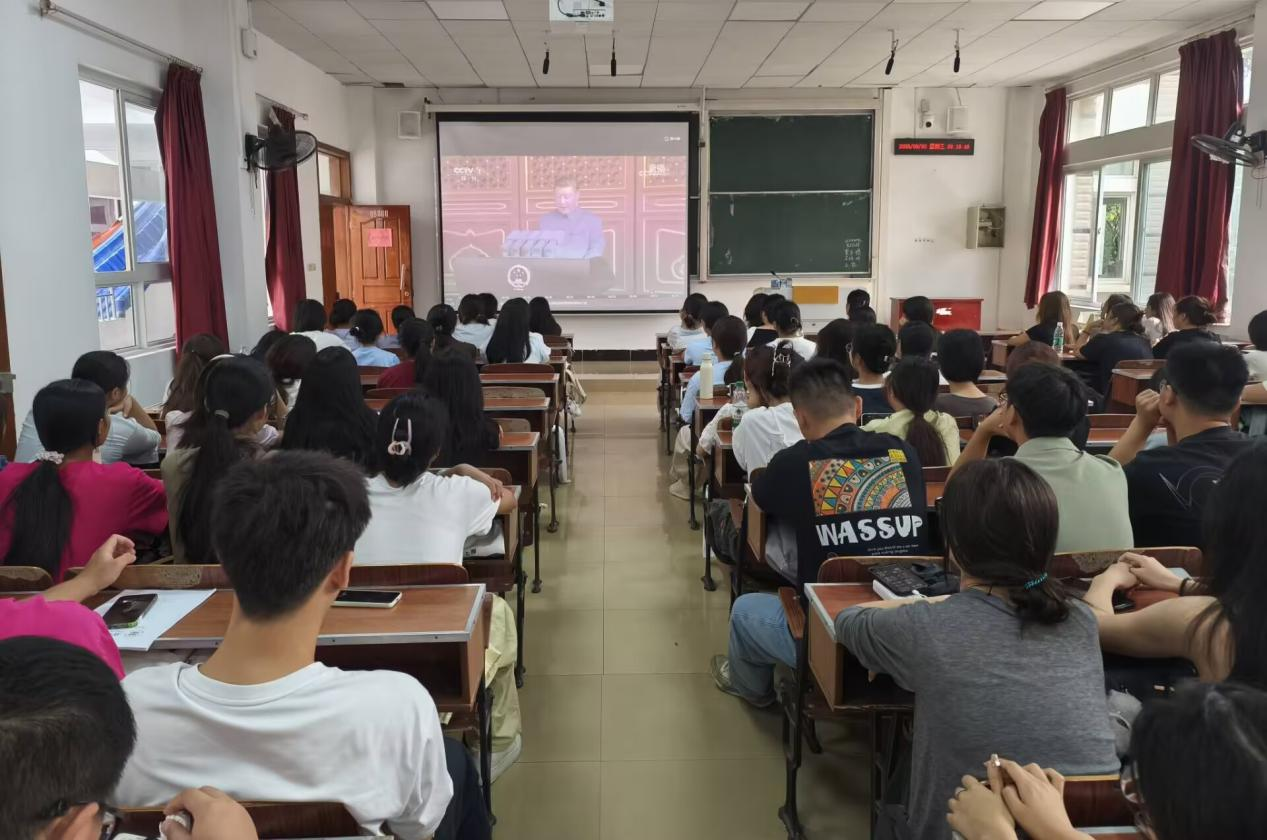 9月3日上午,为弘扬伟大抗战精神、厚植家国情怀,我院组织全体教师、研究生及大二、大三本科生,分别于马克思主义学院会议室、德智楼9B208与9B210教室,共同收看纪念中国人民抗日战争暨世界反法西斯战争胜利80周年大会直播。