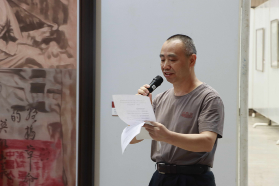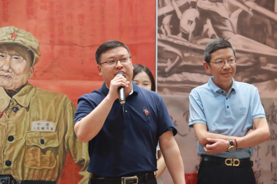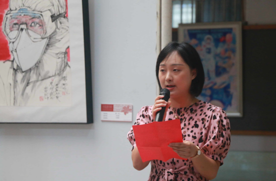 美术与设计学院党总支书记田英致辞,她表示,本次展览是学院党总支深入开展当党史学习教育,讴歌党的丰功伟绩而组织的主题创作活动的部分成果展示。同时也是教职工做“四有好老师”、当好“四个引路人”的工作展示,是学院落实构建“五个思政”育人体系的积极探索。