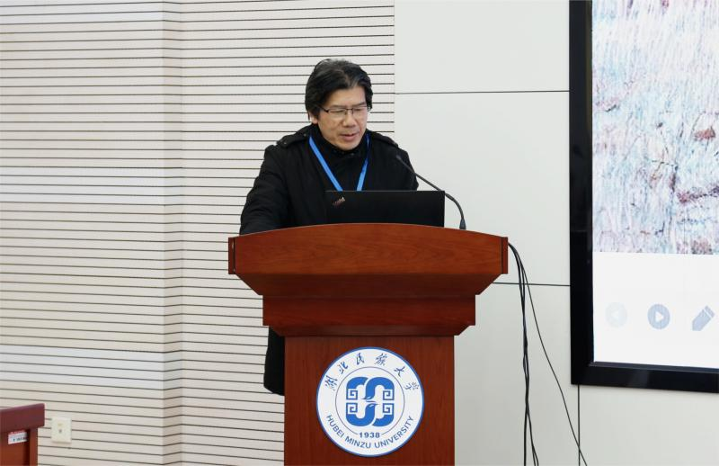 论坛特邀专家、中南民族大学教授罗彬在致辞中从早年对武陵地区的田野考察和《土家族民间美术》著作出版后的社会影响切入,阐述了武陵地区民族民间传统文化艺术和自然景观资源的丰富性与优越性,他呼吁师生要共同保护传承并创新发展这些宝贵艺术遗产和自然生态景观,使其结出丰硕而有价值的学术成果。