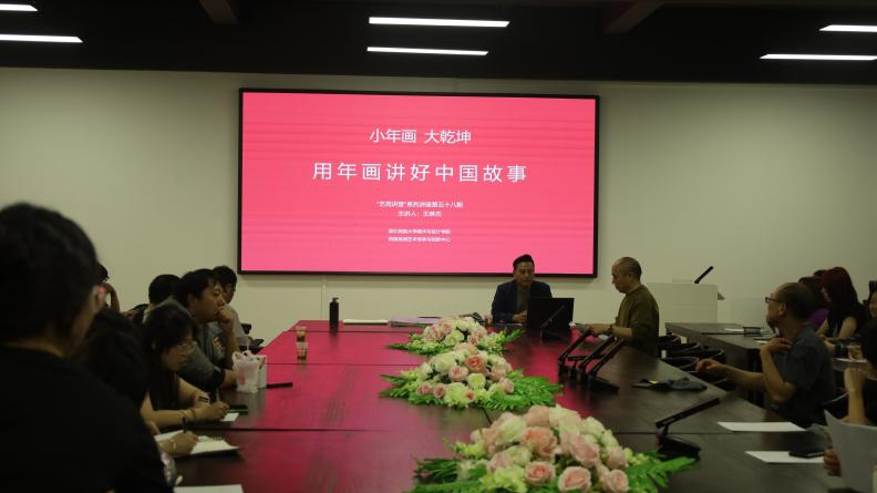 2024年5月13日晚7:00,我院邀请了杨柳青木版年画代表性传承人王琳杰先生,在美术与设计学院7304多功能智慧教室举办了题为“小年画 大乾坤——用年画讲好中国故事”的专题讲座,院长石庆秘教授主持,我院及其他学院部分师生参与了此次讲座。