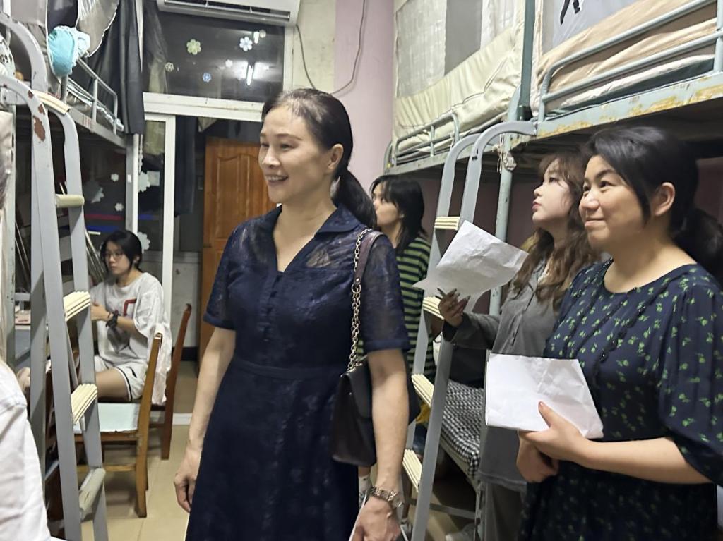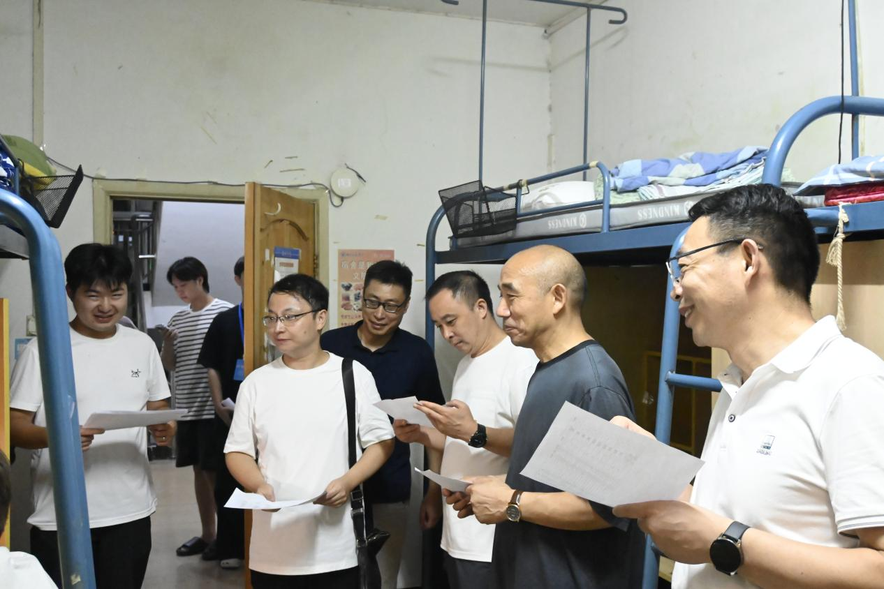 为深入了解2024级新生的校园适应情况和入学思想状态,9月7日晚9点:00,学院党总支书记田英、院长石庆秘带领院领导班子、全体辅导员、新生班主任及学生干部分两组下沉学生寝室开展走访慰问和意见收集工作。