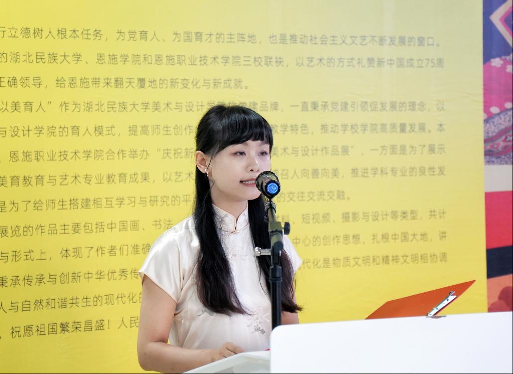 创作者代表——恩施职业技术学院专业教师张文倩表示:将继续以笔为媒,为培养更多具有社会责任感、创新精神和实践能力的艺术设计人才贡献力量,为祖国的文化艺术事业添砖加瓦。