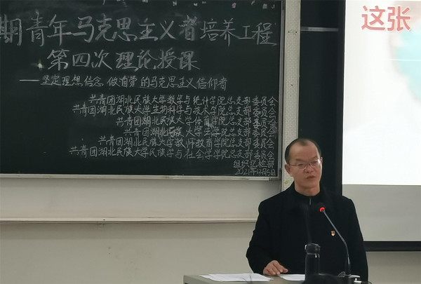 本网讯(记者 谌海容/文 记者 肖欣/图)为加强青年大学生的思想政治修养,端正学习态度,12月5日,我院联合法学院、教师教育学院、数学与统计学院、生物科学与技术学院、体育学院六院团总支组织纪检部于生物科学与技术学院4202教室共同举办第二期“青年马克思主义者培养工程”培训班第四次授课。我院及其他学院全体青年马克思主义者培训学员参加本次活动。
