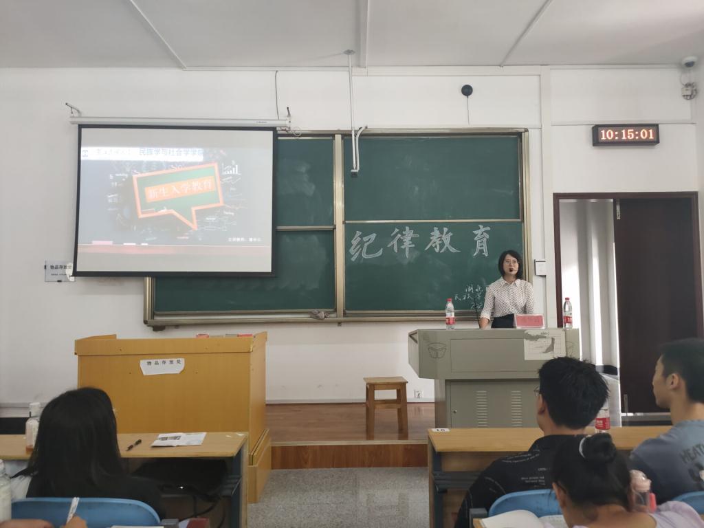 本网讯(记者 张梦婷/文 鲁心雨/图)为增强我院大一新生纪律意识,指引其树立明确的学习目标,尽快适应大学生活模式,9月8日,我院学生会学风建设部在修远楼5A507教室开展主题为纪律教育和学习教育讲座。我院学生科科长张冰,教学科老师潘华云担任主讲人,全体大一新生参加此次活动。