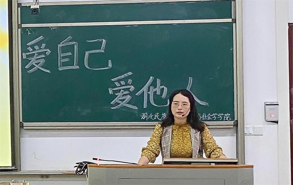 活动前五分钟,工作人员向新生发放《新生心理健康手册》让新生对心理健康问题有大致了解。活动伊始,熊老师借用《钢铁是怎样炼成的》中经典语录等名人名言向在座新生讲述“人的一生该如何度过”阐释生命之意义。她以国家英雄钟南山,张伯礼,教育先锋张桂梅、扶贫干部黄文秀的事迹举例,并结合自身工作经历向新生阐述人生的价值。在“如何正确爱自己”板块中,她着重指出需要积极培养开放性思维、兴趣爱好、自我激励能力、良好人际关系以及健康心态。她强调要学会建立大格局观,注重培养健康思维。同时她还指出六种常见的心理问题,提出相应心理调节方法,希望新生在遇到心理健康问题时学会正确调整自己。在“如何爱他人”板块中,她表示爱他人是爱自己的延伸,要牢牢把握五大原则:处事原则、尊重原则、真诚原则、宽容原则、互助原则。