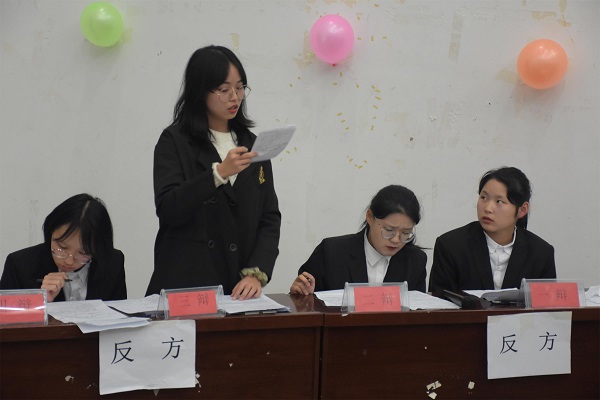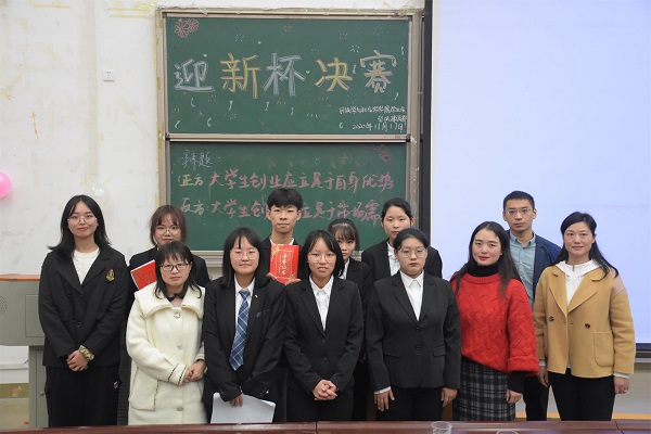 本网讯(见习记者 王丽 刘雨 周树洋/文 肖欣 陈文宇 鲁心雨/图)为顺应社会对思辨型人才的需要,提升大学生逻辑思维能力,11月17日,我院于修远楼5B403学术报告厅成功举办第五届“迎新杯”辩论赛决赛。我院团总支书记熊霞老师,学科建设科副科长赵慧翔老师,大一社会学班主任冉红芳老师、杜鹏老师受邀出席本次比赛并担任评委。我院全体大一新生及各二级学院代表参加此次活动。