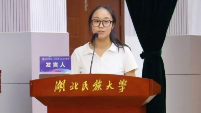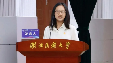 优秀毕业生代表张蔡,现就职于宣恩县晓关乡政府。她坦言,曾为学业深耕不辍,为实践奔走忙碌,但那些全力以赴的汗水,如今都成了她此生难忘的宝贵财富。她用扎根基层的亲身经历书写了民社青年的时代担当,深深激励在场学子以青春之力助力时代发展。