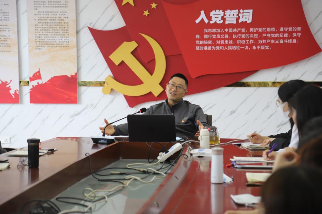 曹书记从入党誓词的历史渊源、中国共产党入党誓词历史和入党誓词对党员的要求三个方面带领在座同志解读入党誓词,领略其伟大之处。在党课讲解的过程中,他结合中国共产党党史,以时间顺序向在座同志具体介绍党在不同历史时期不同版本的入党誓词演变历程。通过对入党誓词的深入剖析,他阐明入党誓词从“自愿”到“志愿”的发展演变体现出党员的先进性、纯洁性,是共产党员有志并情愿加入到中国共产党的本质体现。