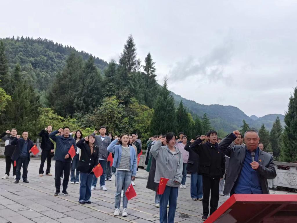 在纪念碑前,全体党员肃立,奏唱《中华人民共和国国歌》,向革命烈士默哀,敬献花篮,并开展庄严而激昂的宣誓,对革命先烈致以崇高敬意和深切缅怀。