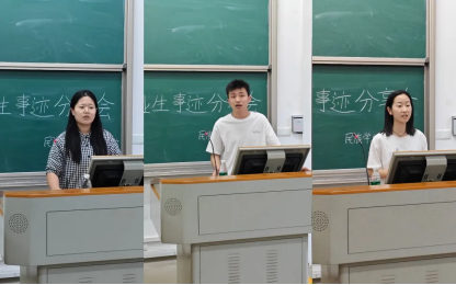 优秀毕业生针对大二学生即将面临的专业方向选择、职业规划等问题进行讲解。段明丹结合自身经历引导大二学生明确目标,合理规划时间,平衡专业学习和综合素质提升。而熊薪科在分享学习方法的同时,鼓励大二学生积极作为。“走过的路,每一步都算数,他如是说。最后,刘美琳介绍了选调生的不同类型,指出公考题型增多时间紧张,需明确方向规划备考,有效准备提升能力。