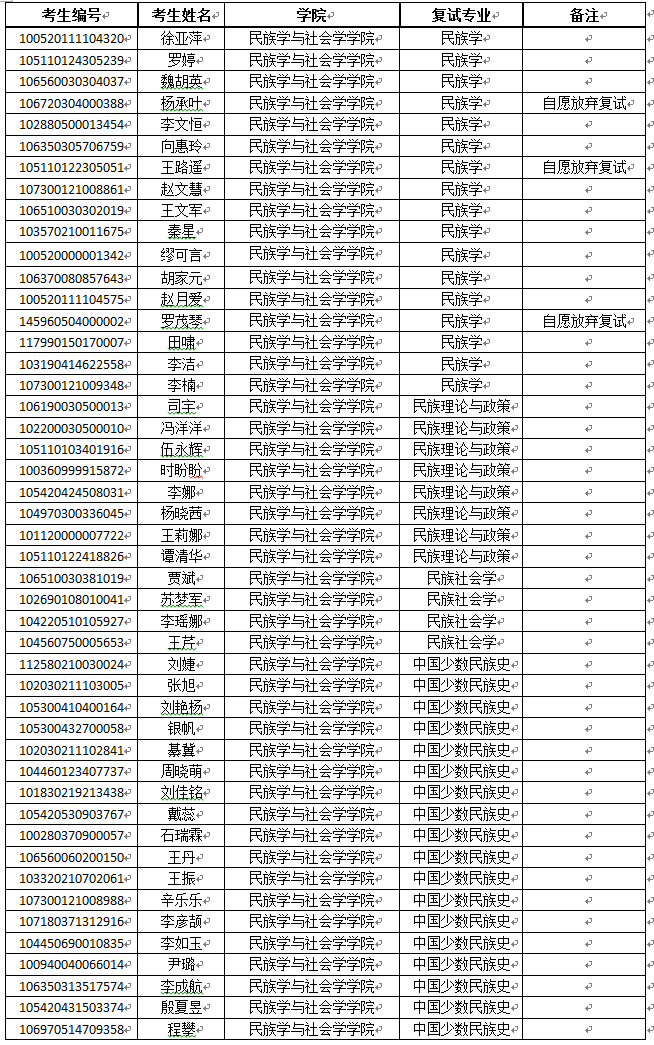 开云电竞官方网站入口民族学与社会学学院2020年硕士研究生招生复试名单(调剂生)