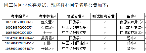 开云电竞官方网站入口民族学与社会学学院2020年硕士研究生招生复试名单(替补)