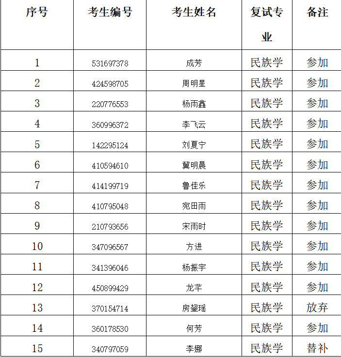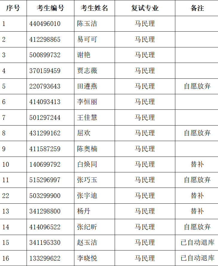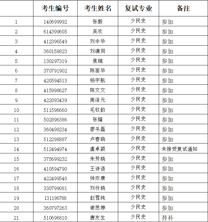 经过我院严格筛查,按照择优录取的原则我院决定给以下调剂考生发送复试通知!