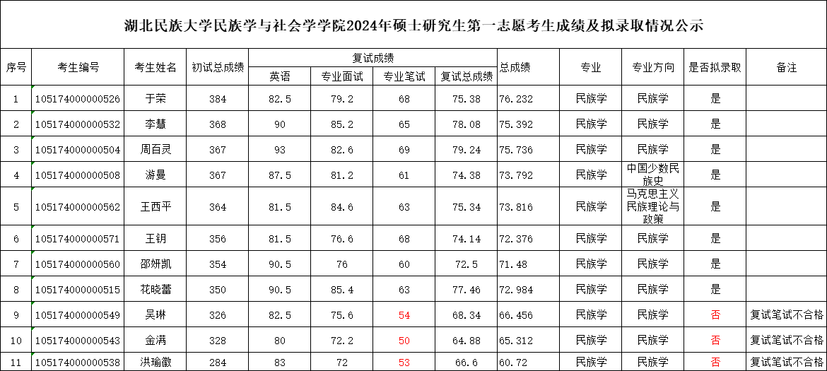 现将2024年一志愿报考我院学生成绩及录取情况公示如下,有异议的考生需在公示期内向学院督察组提出书面申请,学院督察小组及时展开调查,做出合理合规处置,并及时回复考生。督察组应维护考生、工作人员合法权益,确保招生公平公正、平稳有序。若考生对学院回复仍有异议,可由学院上报研究生处复核。复议咨询电话:赵慧翔:18672064299、曹召胜:18107187790。公示期2024年4月1日——2024年4月3日。