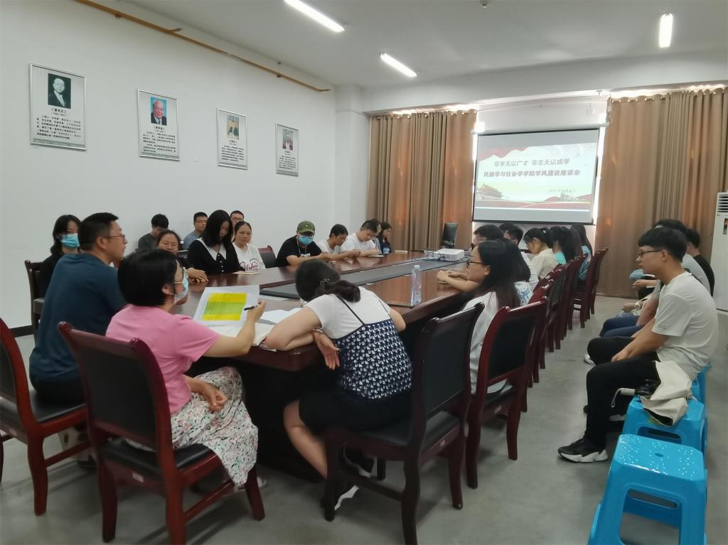 本网讯(记者 张梦婷/文 肖欣/图)为指引学生端正学风,学有所成,9月9日,我院在修远楼5B1205教室开展以“非学无以广才,非志无以成学”为主题的学风建设座谈会。党总支书记曹召胜,学生科科长张冰,团总支书记熊霞受邀出席,大二、大三及大四部分学生参加此次活动。