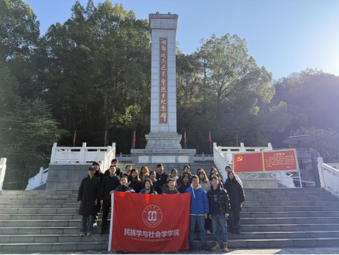 11月29日上午,调查团队来到了田野调查第一站——湘鄂边苏区烈士陵园及鹤峰县博物馆。同学们跟随讲解员的脚步,穿过楼牌、贺龙铜像、烈士祠、纪念碑和主墓群等主要建筑,回顾了1928年到1935年间鹤峰县各族人民在中国共产党的领导下,为开辟革命根据地,建立、发展和保卫红色政权进行的不屈不挠斗争历史,感受革命先辈们精神洗礼。在园区内的鹤峰县博物馆中,同学们在依次阅览《民族文物陈列》《民族碑廊》《湘鄂边苏区革命文物陈列》三个专题长廊,从商周魏晋南北朝时期的部分典型器物、容美土司时期的相关文物,再到鹤峰土家儿女发展湘鄂边革命根据地的斗争历史全过程,以历史为脉络系统了解了以土家族为主体的少数民族创造的丰富而绚丽多彩的民族民俗文化和百折不挠的革命精神,也为奔赴土司文化底蕴深厚的屏山村调研打下知识基础。