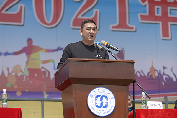 田景福致闭幕辞。他代表学校党委、行政和运动会组委会对取得优异成绩的运动员个人及集体致以热烈的祝贺,对为运动会顺利进行付出辛勤努力的全体工作人员、裁判员表示崇高的敬意。他表示,本次运动会充分体现了“弘扬体育精神 践行体育育人”的理念,广大师生积极参赛、顽强拼搏,展现了优良的竞技水平。他强调,生命在于运动,体育锻炼是一种终生的生活方式,希望全体师生员工将顽强拼搏、团结协作、永不放弃的体育精神发扬到学习和生活中,保持良好的运动心态,坚持加强体魄锻炼,为建设特色鲜明的高水平应用型民族大学做出更大贡献。