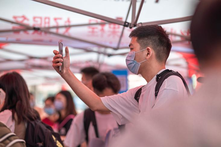 学生手机扫码进校园(张旭/摄)