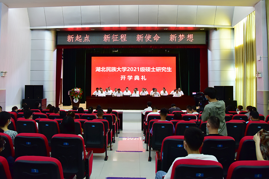 顿祖义致辞。他对2021级全体硕士研究生的到来表示热烈欢迎,祝贺他们成为湖北民大新的主人。顿祖义指出,如何应对世界大变局、抢抓大机遇,如何奋进新征程、担当新使命,是新时代的研究生要思考和回答的重要时代课题。他期待2021级全体研究生艰苦奋斗,努力涵养创新精神;甘于奉献,努力厚植家国情怀;自强不息,努力锤炼坚韧意志;追求卓越,努力探寻为学之道。