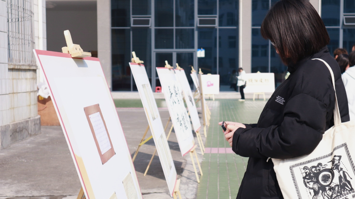 学生用手机拍摄书画作品