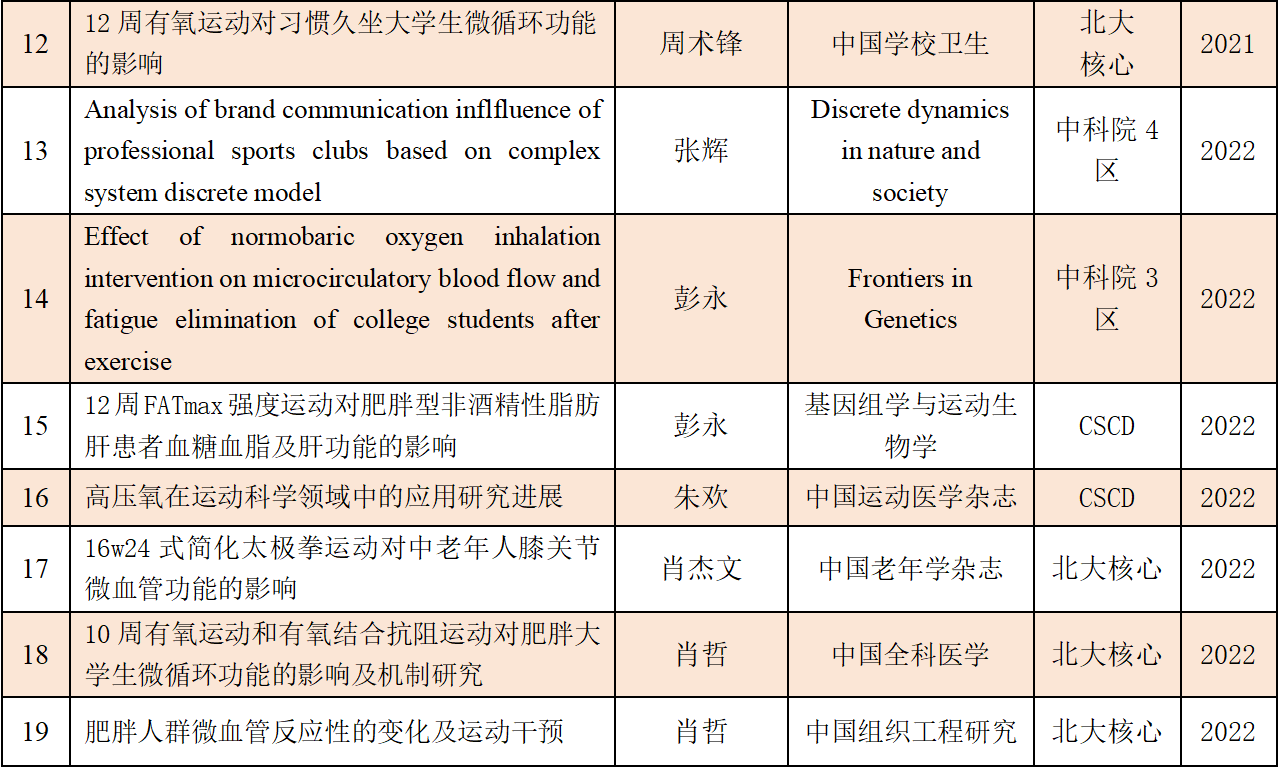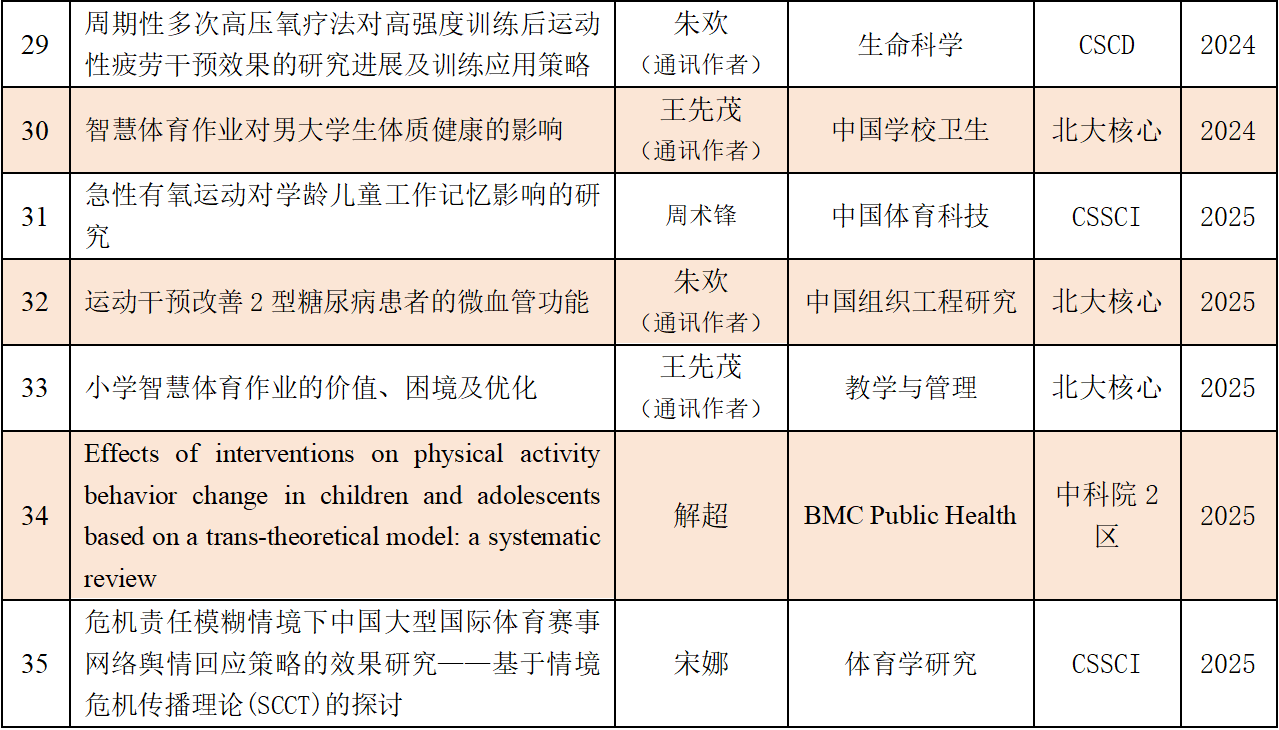 体育学院近五年科研成果(学术论文)
