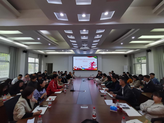 为做好运动会筹备工作,多部门协同协作,推动2024年运动会顺利召开,4月11日下午,我校在学工处二楼会议室召开运动会准备会。学校各承办单位以及各参赛单位领导、老师、学生干部参加会议,体育学院党总支书记何斌主持会议。