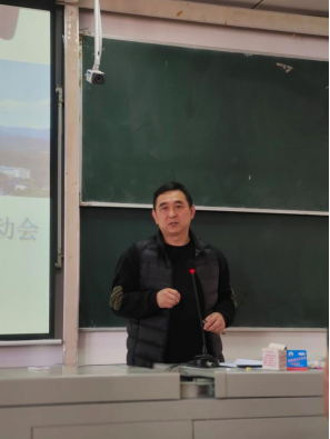 在9A210教室运动员及教练员动员会议上,体育学院副院长胡庆华为本次会议的主持人。