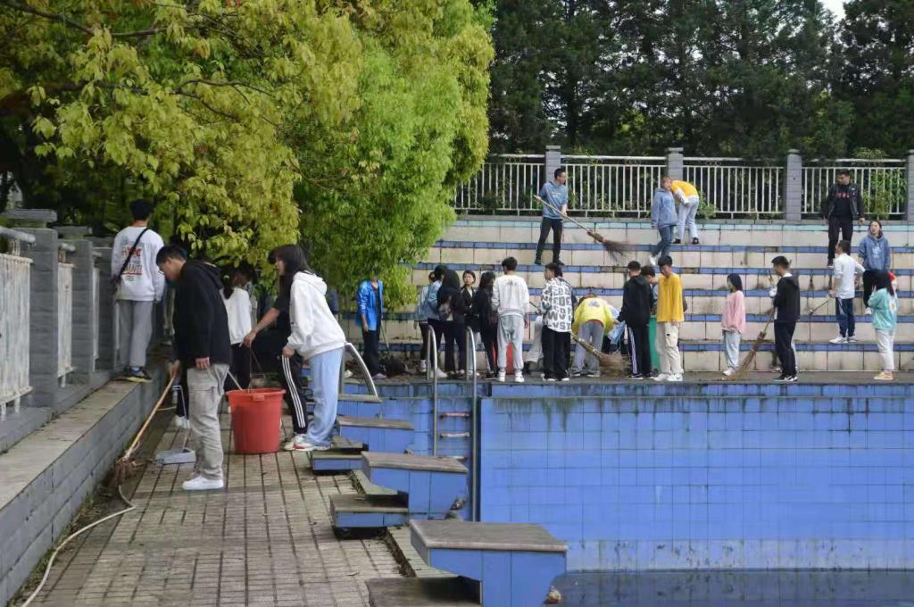 4月15日下午3点,我院学生科科长姜素凤组织学生党员志愿者和入党积极分子开展清扫校园游泳池杂草卫生活动。