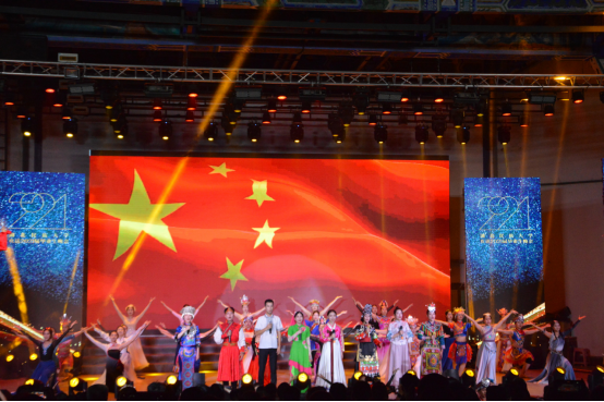 离退休人员工作处舞蹈《映山红》、体育学院《重逢》、开云电竞官方网站入口附属小学情景舞蹈《传承》、外国语学院、国际交流合作处歌伴舞《千年之约》、经济与管理学院情境朗诵《百年之约》、法学院、马克思主义学院、民族学与社会学学院歌曲《凤凰花开的路口》、文学与传媒学院情景歌舞《未来可期》、研究生处歌伴舞《星辰大海》、学生工作部(处)歌伴舞《奔跑的青春》、校学生会、校友工作办公室音诗画《一生有你》、音乐舞蹈学院、校学生会歌伴舞《中华民族一家亲》《我的祖国》、礼花绽放,歌舞发扬。