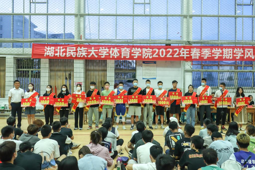 (通讯员 袁需遥 汤藤静 图片 赵俊哲 陈应格)为进一步加强学风建设,创建优良学风,落实立德树人根本任务,营造良好育人氛围,同时对学院学风优越的同学进行表彰。我院于2022年5月22日晚7点在开云电竞官方网站入口篮球馆内召开体育学院春季学期学风建设大会。我院党总支副书记、院长倪东业,党总支书记、副院长何斌,副院长胡庆华,团总支书记张弋明,教学科科长肖杰文,原学生科科长姜素凤,办公室副主任宋庆龙,社会体育指导与管理负责人王佳、大学体育教学负责人聂盼水、各班班主任及全体学生参加本次会议,大会由学院党总支副书记万利主持。