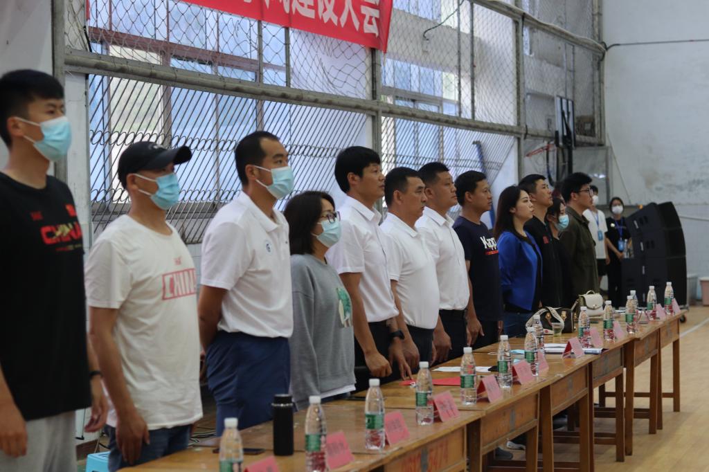 会议伊始,由主持人万利介绍出席本次会议的嘉宾。随后全体师生起立,奏唱国歌。