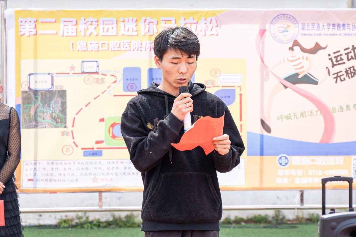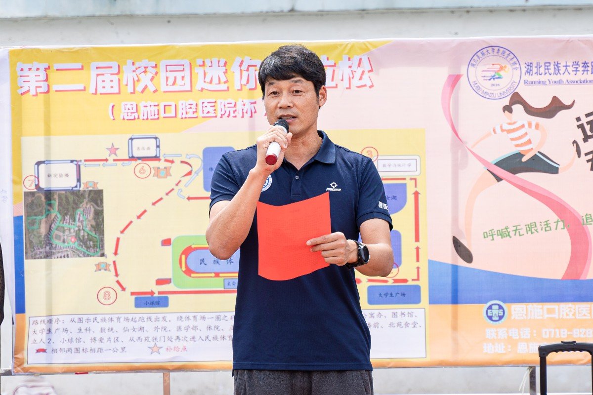(通讯员 汤藤静 肖雅)为提高大学生参加体育锻炼积极性,丰富校园体育文化并宣传全民运动意识;增强自身免疫力以减少呼吸道感染和流行病的发生、新型冠状病毒感染风险。5月22日,我院奔跑青年协会在民族体育场举办第二届“校园迷你马拉松”(恩施口腔医院杯)活动。我校校团委副书记向驰、我院党总支书记何斌、党总支副书记万利出席本次活动,并受到恩师口腔医院的全力赞助和校卫队以及全校师生的大力支持。