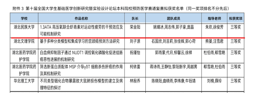 我院项目在“第10届全国大学生基础医学创新大赛全国复赛”中获得预防医学组三等奖