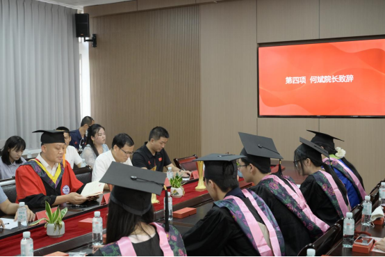 张辉副院长宣读关于表彰2025届优秀毕业生的决定和关于授予硕士、学士学位的决定。何斌院长为优秀毕业生代表颁奖。