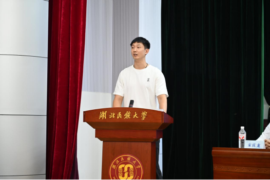 新生代表王宇杰、老生代表荣金阳和研究生新生代表闵念慈依次发言。