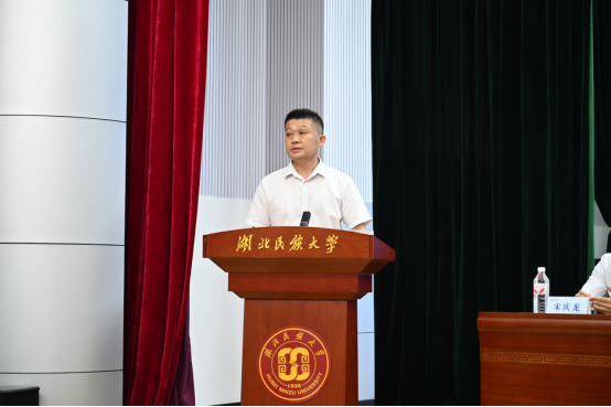 9月14日晚八点,我院2025级新生开学典礼在行政楼一号会议室隆重举行。学院领导班子成员、党支部书记、各科室负责人、系部(中心)主任、全体辅导员、新生班主任、教师代表,特邀嘉宾我院2008届校友、芭蕉侗族乡中心学校党支部书记吴海琼和09届校友、来凤维国道路建设工程有限责任公司董事长田维,以及老生代表和2025级全体新生共同出席典礼。典礼由体育学院党总支副书记万利主持。