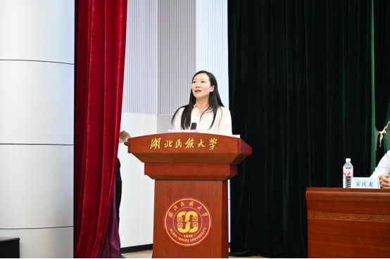 优秀校友代表吴海琼结合自身教育工作经历和所获荣誉,分享了在平凡岗位上传递“爱的教育”的体会。她呼吁同学们珍惜大学时光,并送上三个关键词:一是“扎根”,扎实学好专业,不把训练当任务,真正做到学以致用;二是“拓界”,不被“体育生”标签局限,勇于尝试跨界,多学技能,让综合能力成为未来的惊喜;三是“守心”,锚定方向、保持热爱,不跟风、不盲从,顺境中不骄,逆境中不弃,拥抱未来的无限可能。