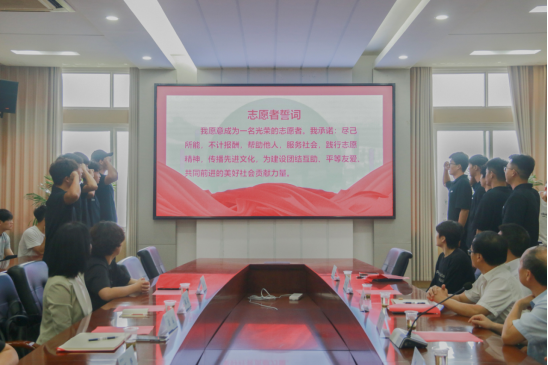 授旗仪式完毕后,进入了激动人心的集体宣誓环节。全体2025届支教志愿者肃立,高举右拳,用铿锵有力的誓言表达了他们恪尽职守、传递爱心、不负使命的坚定承诺。誓言回荡在会场,展现了志愿者们昂扬的斗志和崇高的责任感。