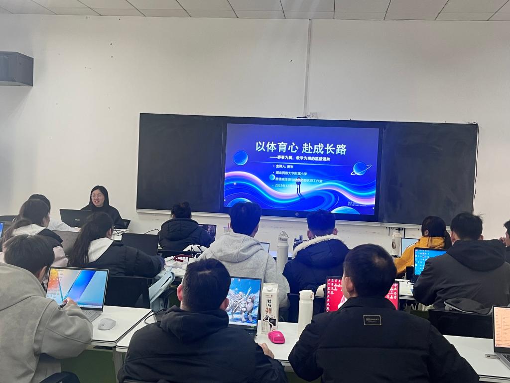 为搭建一线中小学交流平台,助力研究生课程学习与专业实践,2025年12月5日,学院特邀开云电竞官方网站入口附属小学曾岑老师开展主题为“以体育心 赴成长路——赛事为翼,教学为根的温情进阶”的专业成长分享会。
