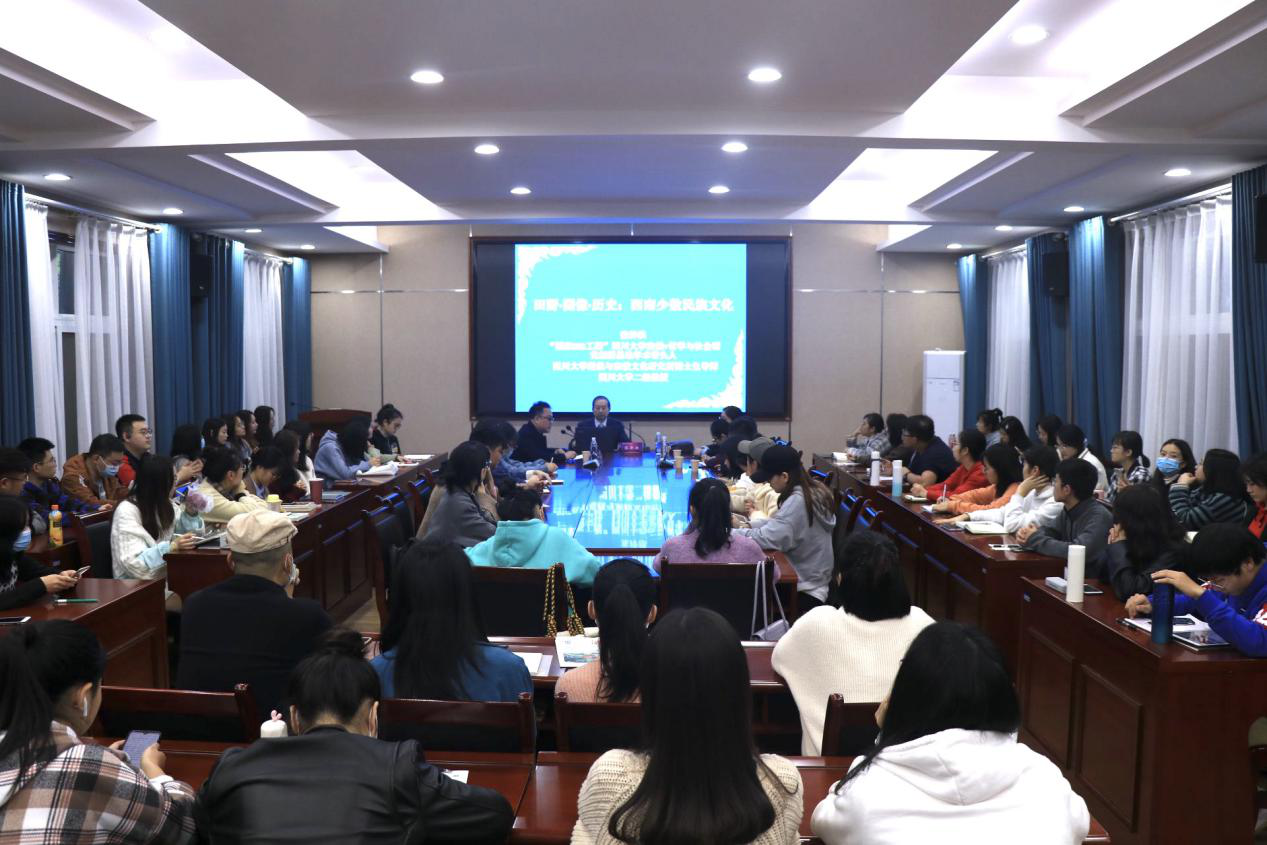 文学与传媒学院院长罗翔宇主持本次讲座。我校研究生处副处长申莉、民族学与社会学学院副院长杨洪林教授,以及赵杨、郭峰等老师与文传学院近百名学生到场聆听。