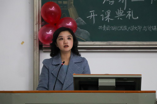 本网讯(记者 张宏迪 高羽 顾迪/文 李秀丽/图)11月13日,文学与传媒学院青马工程开课典礼暨第一次授课在修远楼5A207教室举办。我院党委副书记陈妍,团总支部书记谭芸,学生科老师王修皓受邀出席。