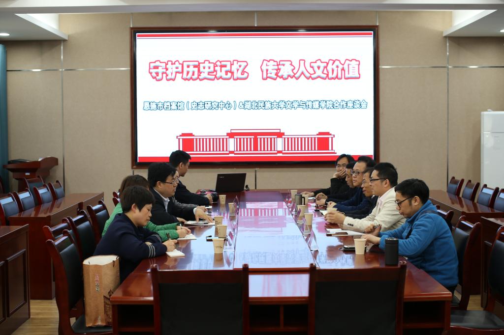 汪盛松馆长介绍了恩施市档案馆(史志研究中心)的基本情况,并对当下数字化系统、校馆协同发展工作、文化传承等方面进行深入探讨和交流。