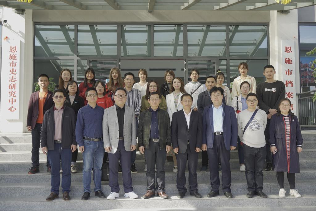 恩施市市委办公室常务副主任马开友、恩施市档案馆馆长汪盛松及领导班子成员与我院党委书记杨光宗、院长罗翔宇、副院长何荣誉、校语委常务副主任郑艺等领导及研究生30余人出席此次签约暨揭牌仪式。