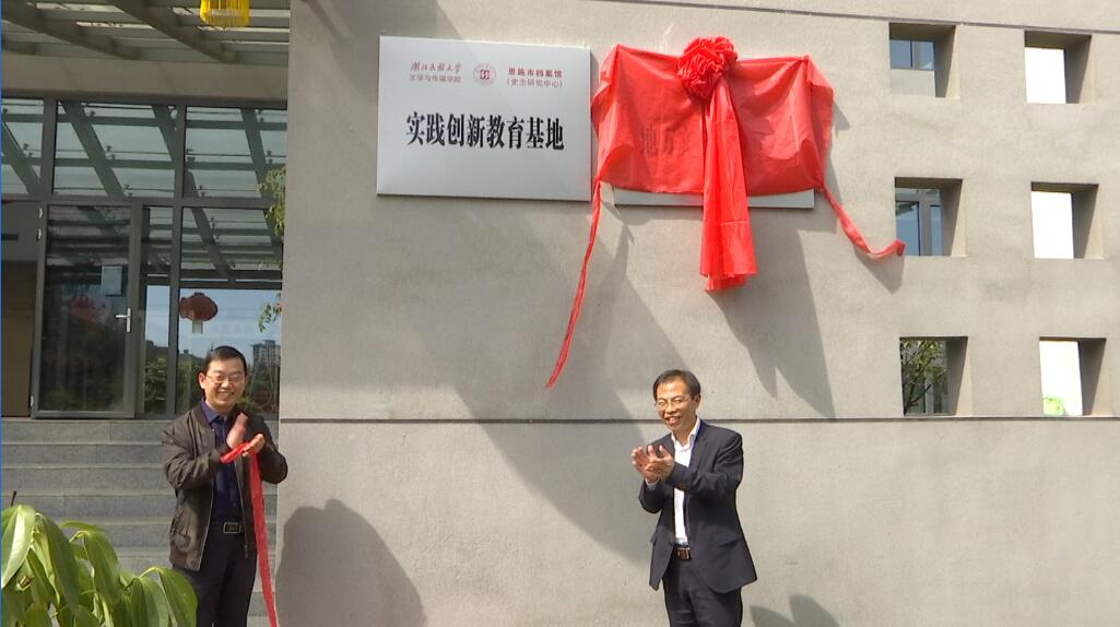 恩施市市委办公室常务副主任马开友与我院党委书记杨光宗为实践创新教学基地揭牌