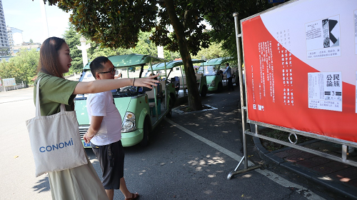 项目组成员与观展人员进行交流