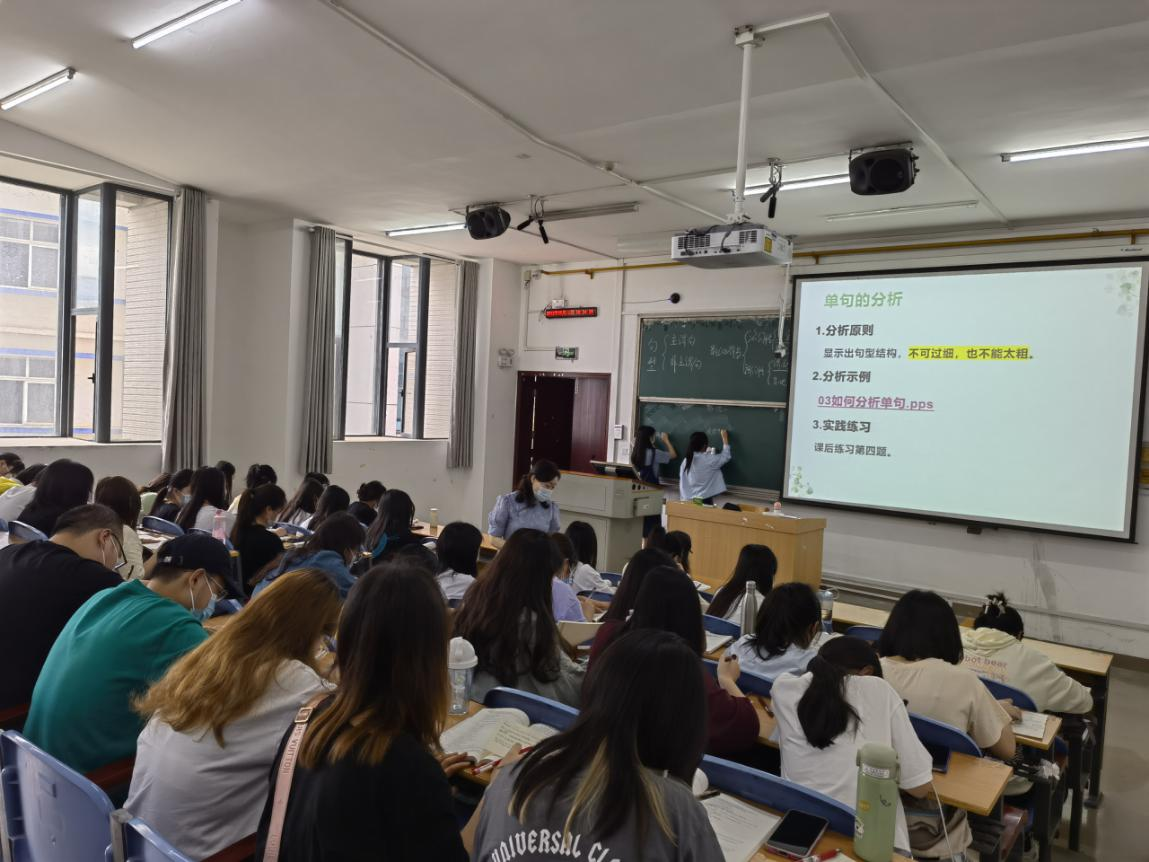《现代汉语》课上,授课教师江佳慧准备充分,运用通俗易懂的语言和丰富详实的例子,深入浅出地向同学们详细讲解了“单句的分析原则”,同学们听讲认真,课堂气氛活跃,展现了我院良好的教学氛围。课后,李军对江老师的教学水平给予积极评价,对学生踏实认真的求知态度给予肯定,并就改进课堂教学、提高教学质量提出意见和要求。李军指出,要以师范专业认证为契机,进一步改进课堂教学、提高教学质量和人才培养质量。