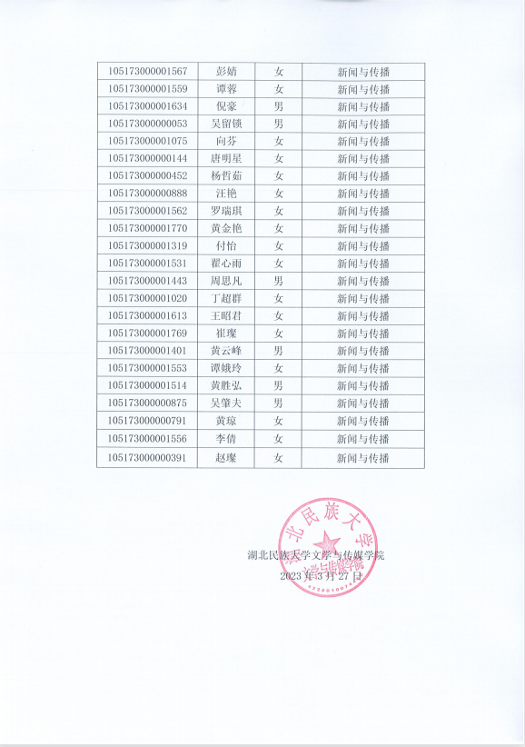 文学与传媒学院2023年硕士研究生复试名单(第一批)