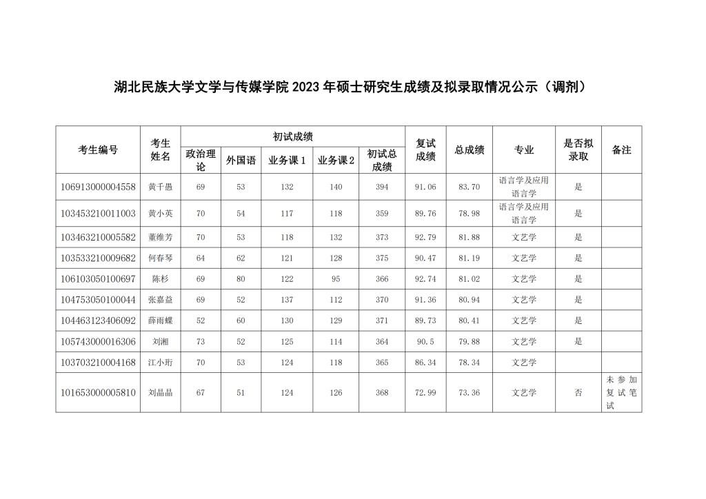 开云电竞官方网站入口文学与传媒学院 2023 年硕士研究生成绩及拟录取情况公示(调剂)