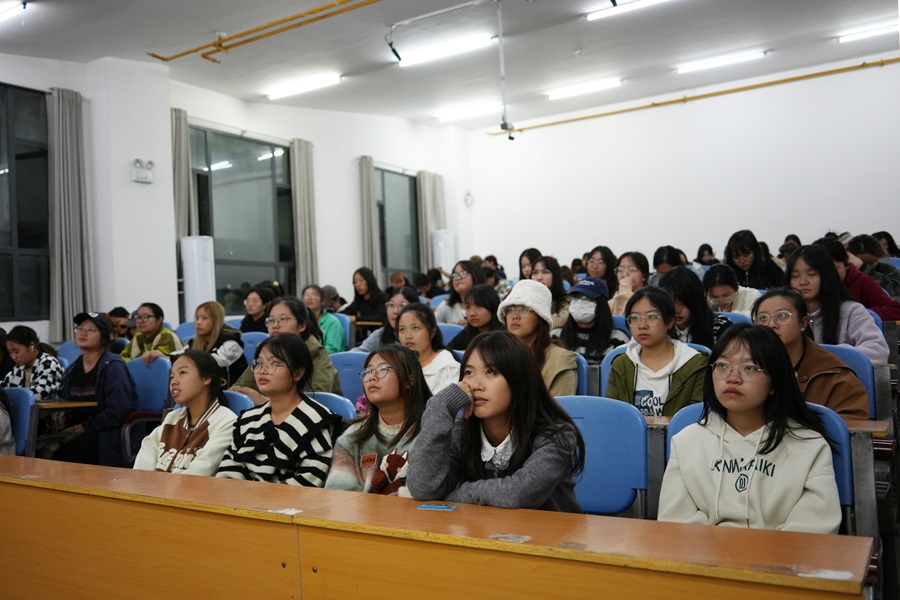 本网讯(记者 王仁茜 吴雯茜 周心怡(见习)/文 杨汝霞(见习) 刘诗怡/图)11月7日,文学与传媒学院在修远楼5A104教室开展《校“诈”风云——湖北百所高校反诈脱口秀》沉浸式反诈骗教育课堂。本次反诈课堂由湖北广播电视台联合湖北省公安厅、湖北省教育厅等单位共同开展,百万大学生线上线下同上反诈课。2023级同学集中观看本次直播课程。